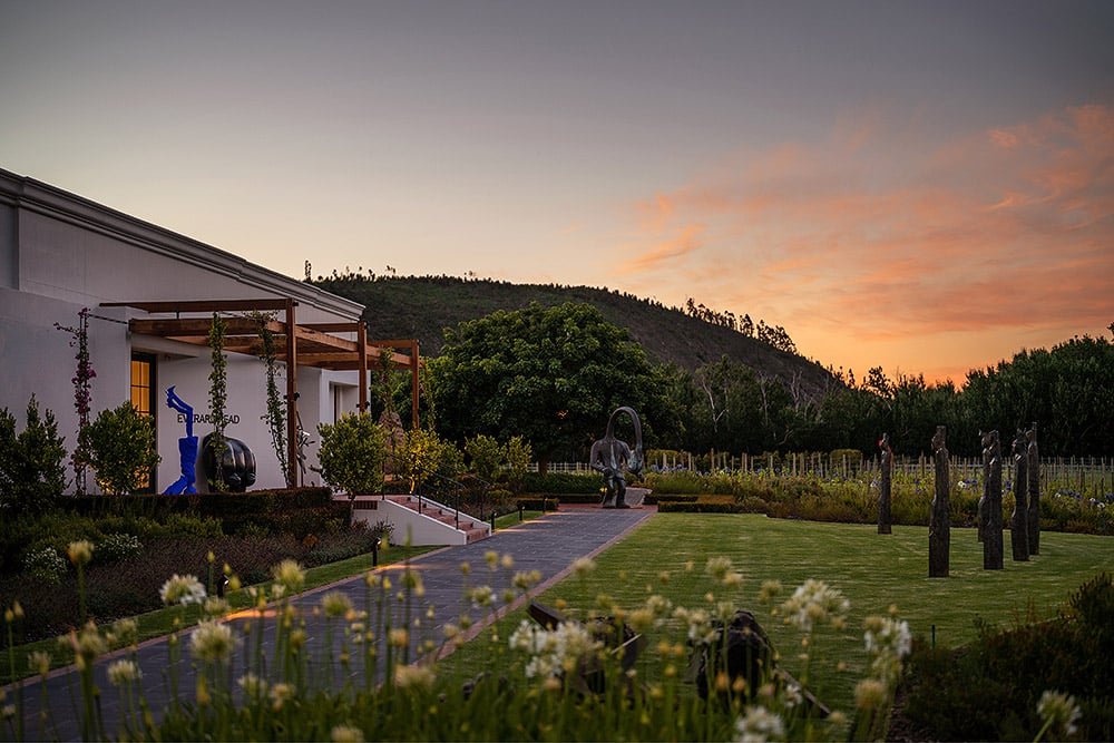 Das 100 ha große Leeu Estate kombiniert Spa und Weingenuss. Ähnlich genial ist die Lage im südafrikanischen Franschhoek, umgeben von Weingärten, Flüssen und der typischen Fynbos-Vegetation.