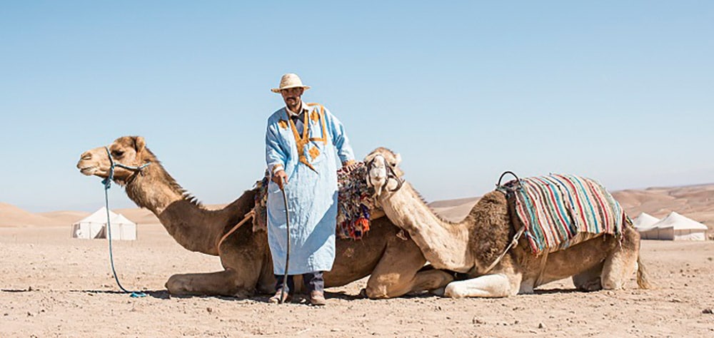 Entdecken Sie heute eine andere Seite Marokkos: das wunderschöne Atlasgebirge mit seinen schneebedeckten Bergen und den kleinen Dörfern mit ihrer faszinierenden Berberkultur, bevor Sie im Kasbah Tamadot, dem prächtigen Anwesen von Sir Richard Branson, zu Mittag essen. Sie übernachten heute im Scarabeo Camp, einer kleinen weißen Perle weit weg vom Trubel Marrakeschs, in der Agafay-Felswüste. Erleben Sie wie ein Beduine eine Nacht in einem Zelt, das sich durch eine einfache, aber elegante Einrichtung auszeichnet. Den Sonnenuntergang, der die Wüste in unglaubliche Farben taucht, erleben Sie während eines Kamelrittes