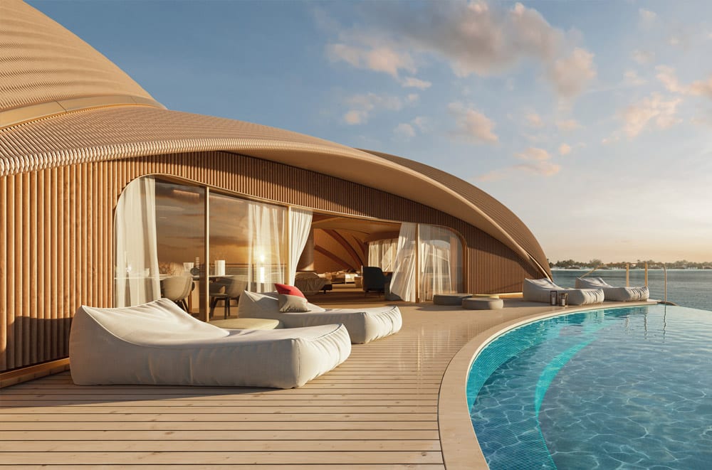 Futuristischer Luxus, der innovative Architektur und Natur miteinander verschmelzen lässt: das 2024 neueröffnete Nujuma, a Ritz-Carlton Reserve.